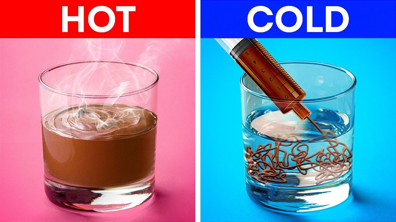 Take out the balloon and pop it! Now we have a beautiful chocolate plate 🙂 Put your favorite ice cream inside of it (we recommend you use different flavors and colors to make it look even more yummy and colorful). We also have an excellent decor idea for your dessert! Use a glass of cold water to create a unique chocolate decor and put it on top 😉 You can also add some berries or your favorite syrup.