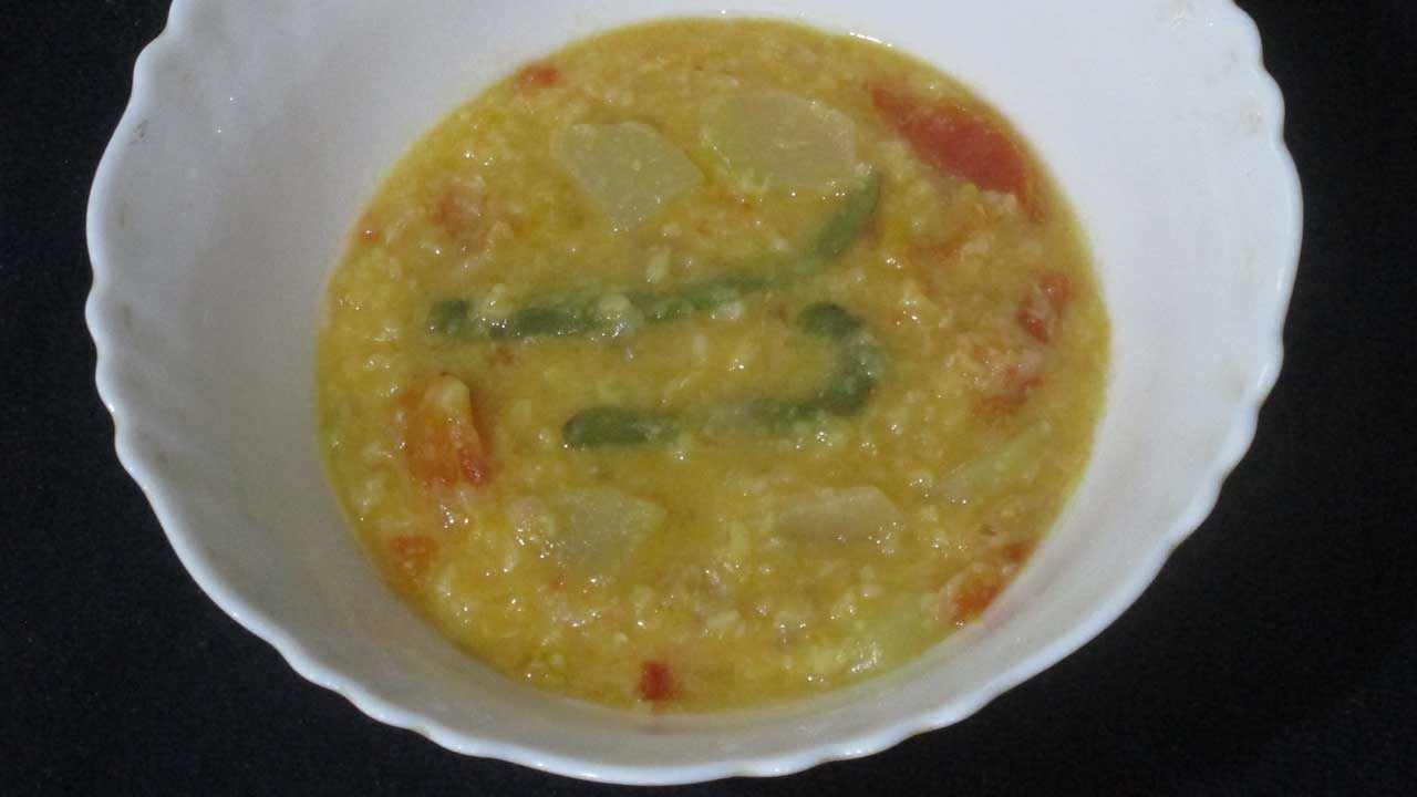 Here the method of preparation of the Split Mung Beans Chayote Stew is given