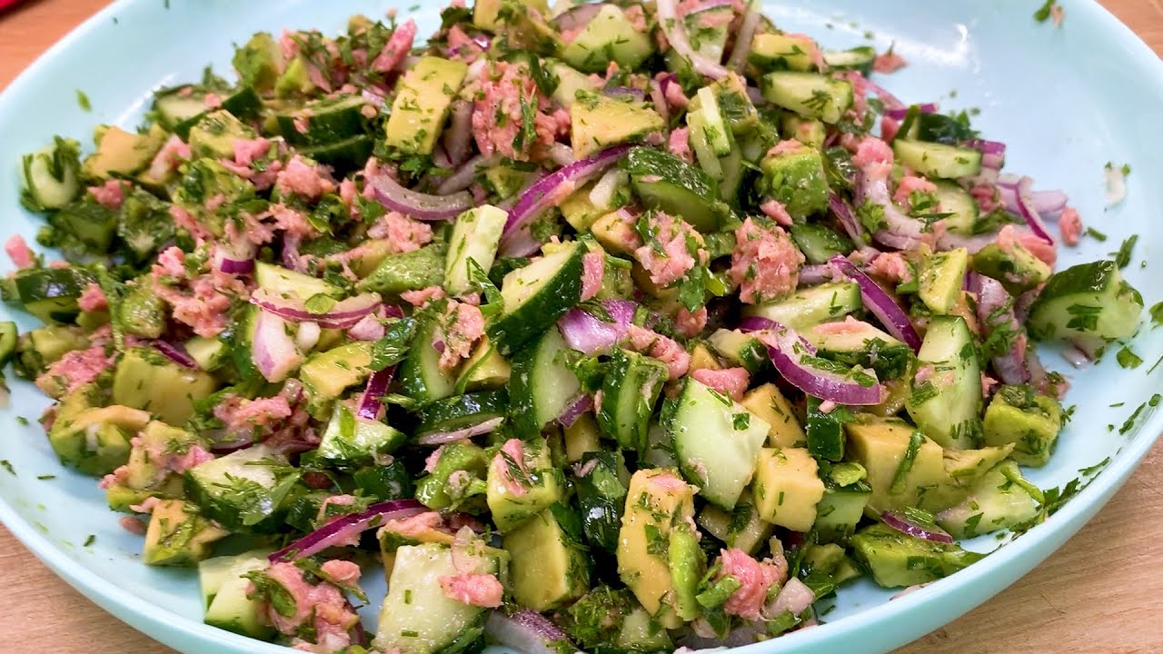 If you have canned tuna and 2 avocados, make this simple salad! I It is great for healthy breakfast, lunch or dinner. I takes less than 10 minutes to make and the tasty dish is on your table ready to eat. It’s nice, healthy and easy recipe. This salad is packed with proteins and healthy.