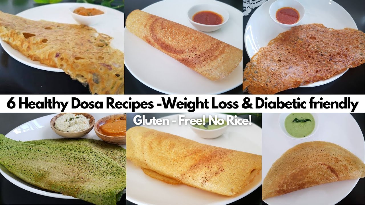 Sharing six healthy dosa recipes! Gluten-free, crispy and delicious, these dosas are a great choice for weight and diabetes management.