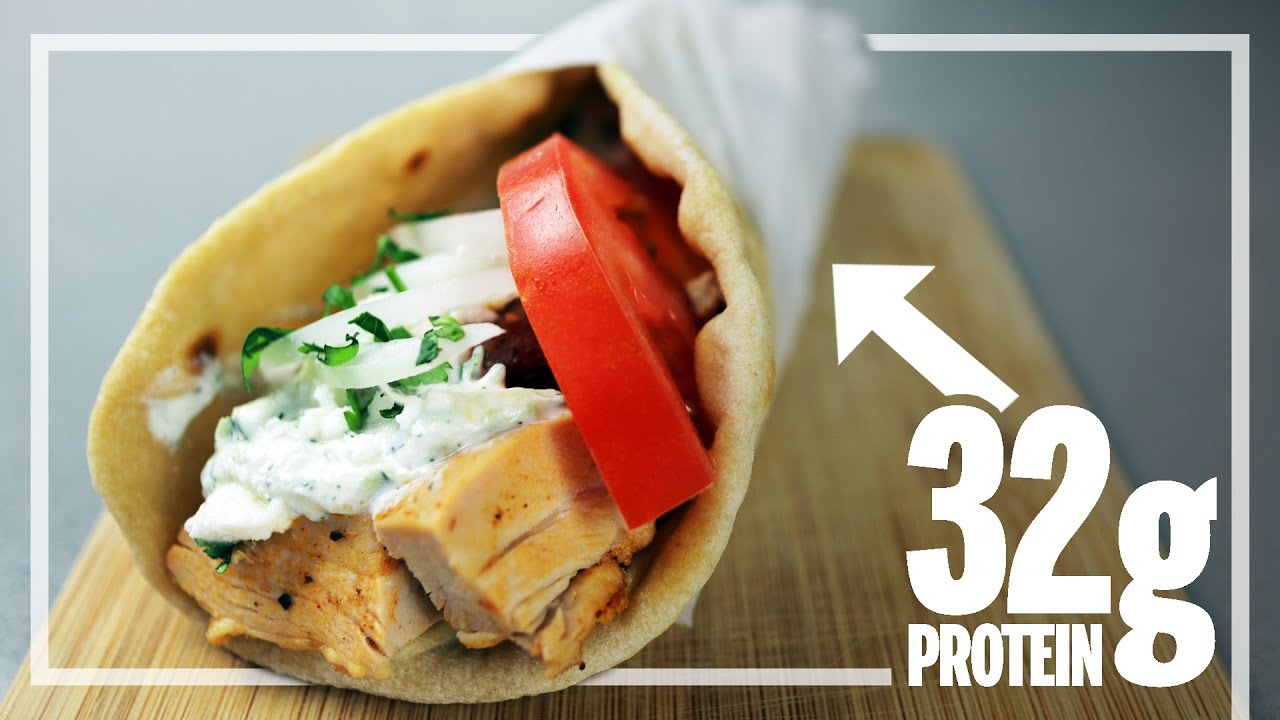 The chicken gyro will be made with homemade tzatziki sauce, marinated chicken, and protein pitas. For under 300 calories this is a low calorie, high protein pita sandwich that your significant other will beg for as well.