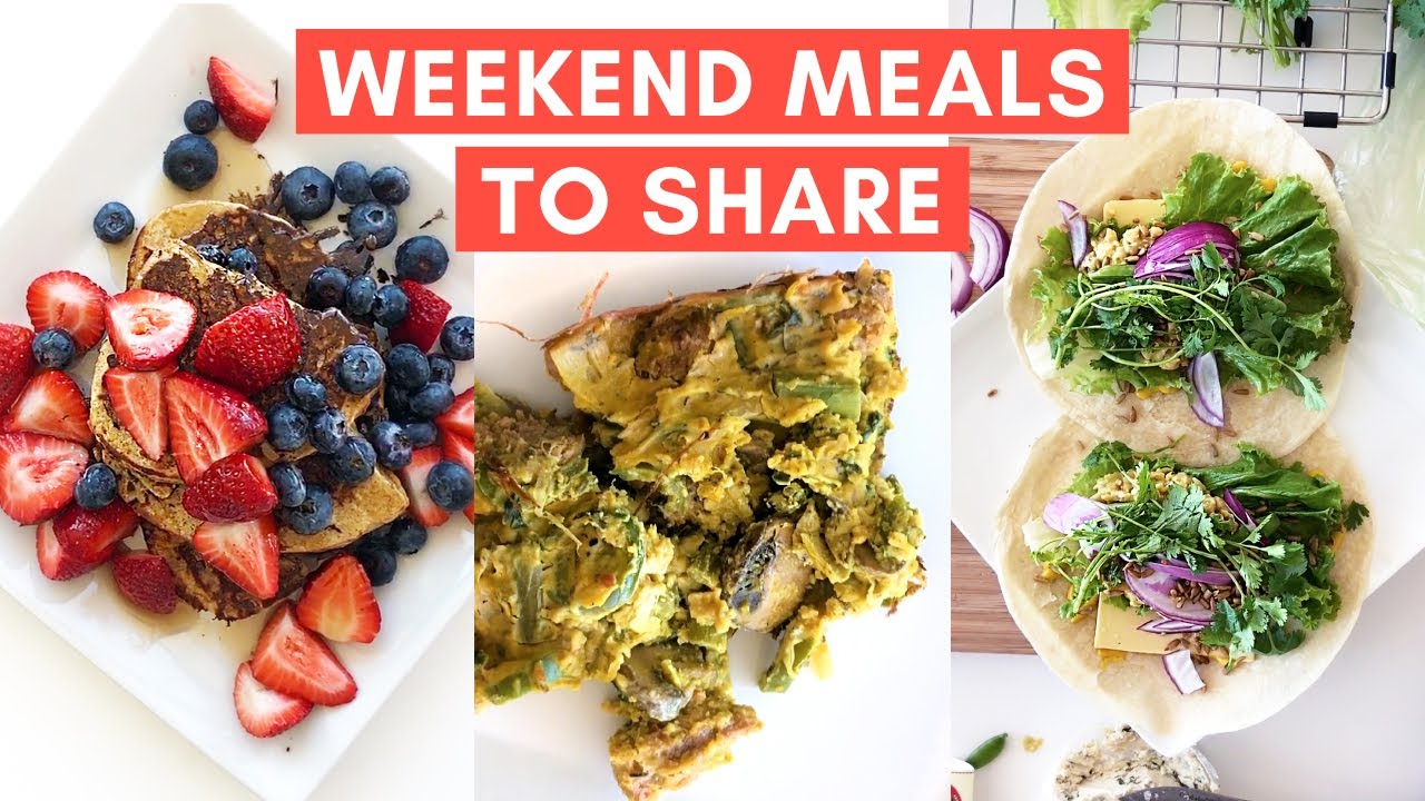 WHAT I EAT WEEKEND MEALS. Healthy vegan meal ideas for family, parties, and sharing! Includes what I ate Saturday and Sunday vegan breakfast, vegan brunch, vegan lunch, and vegan dinner.
