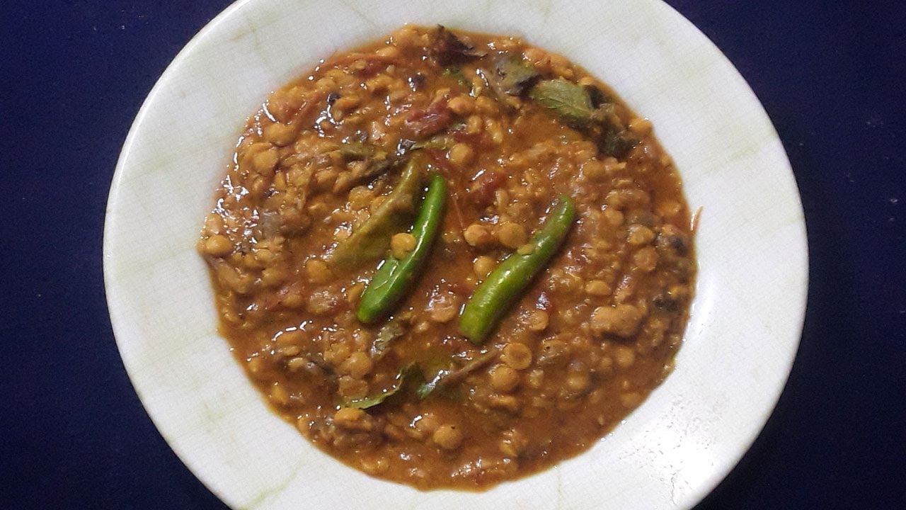 Heat the pan and pour in 10 ml of oil . Put in the pieces of one onion and saute till it loses it’s pink color. Put in the 25 g of garlic and 25 g of ginger pieces and saute well. Put in the pieces of a tomato and saute and mix well. Put in the 3 Green chillies and saute well. Put in the 100 g of split chickpea and mix well. Put in a spoon of mixture of spices, a quarter spoon of turmeric powder and salt to taste and mix well. Add 75 g of mint leaves and mix well. Add 300 ml of water and mix well. Let the mixture cook for 25 minutes in the pressure cooker. Take off the flame and serve.