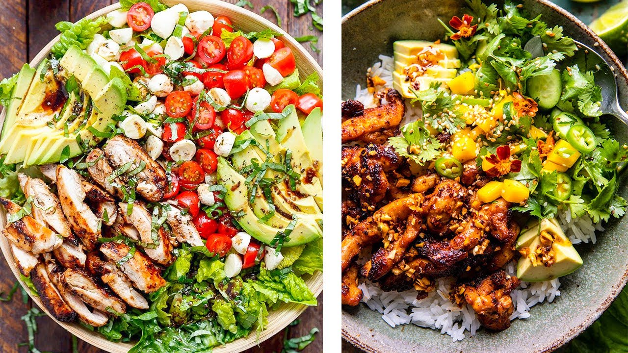 this low carb healthy chicken salad is for 3 person 2 big chicken breasts 1 medium lettuce 3 small tomatos 3 calriston peppers 3 eggplants garlic parsly purslane olive oil red pepper , black pepper , salt , thyme vinegar 4 spoons yogurt carbchickenchicken saladscookCuisineDelicious Saladdiet fooddressing saladeasy foodeasy saladfast foodfoodfood diyfood recipehealthyHealthy Cuisinehealthy foodHealthy Ideashealthy recipeshealthy saladHealthy Salad IdeasHealthy Salad Recipeshomemade foodhow to cookideaslow carb foodlow colories foodrecipesaladsalad diySalad Ideassalad recipesstreet foodVideoVlogYouTube