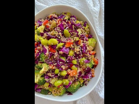 Delicious crunchy Thai quinoa and veggie salad is a vegan and gluten-free side dish that is perfect for meal prep, parties, or picnics.