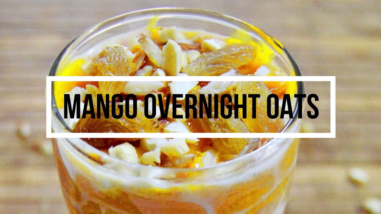 Mango overnight oats – an incredibly easy to make breakfast and an easy way to start the busy day. Delicious overnight oats flavoured with mango pulp and topped with raisins and nuts makes a great breakfast that doesn’t require cooking on mornings. All it needs is just a few minutes to assemble soaked oats, mango pulp and toppings.