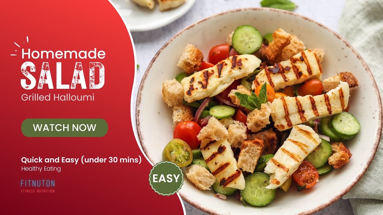 Homemade, summer salad with grilled halloumi is a perfect idea for your healthy lunch. This is a vegetarian, vegetables and grilled halloumi recipe that is low in carbs, making it good for those who are looking to keep a lean body and stay in good shape. Welcome to FITNUTON, the channel about fitness and nutrition, for people who love exercising and are interested in healthy eating. Read the description of every video, where you can find the detailed nutritional information of healthy and easy recipes.