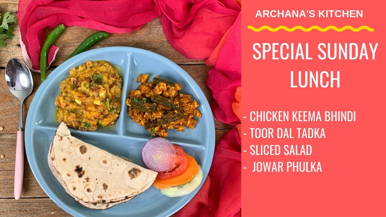 Looking for a delicious Sunday meal? Then give this simple, healthy and nutritious meal a try which has recipes such as Keema Bhindi, Punjabi Toor Dal Tadka, Jowar Atta Roti and Indian Sliced Vegetable Salad. This is a very easy and simple meal that you can prepare for a special sunday lunch.