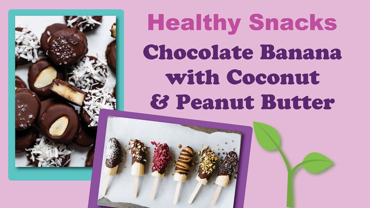 This healthy food project uses organic bananas, raw chocolate, coconut shavings, and peanut butter.