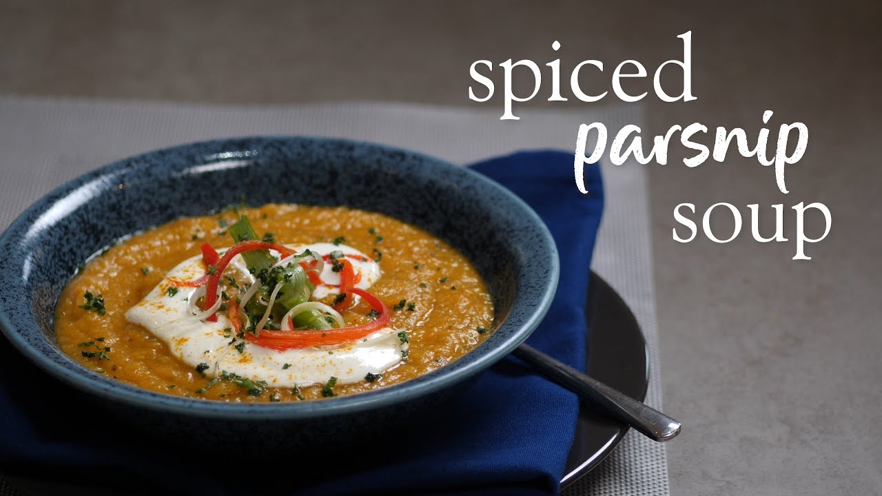 Spray a non-stick roasting tin with low-calorie cooking spray and add the parsnips, carrots, onion, tomatoes, garlic, spices and some seasoning. Toss well, spray with more low-calorie cooking spray and roast for 40 minutes or until the vegetables are soft and just beginning to brown.
