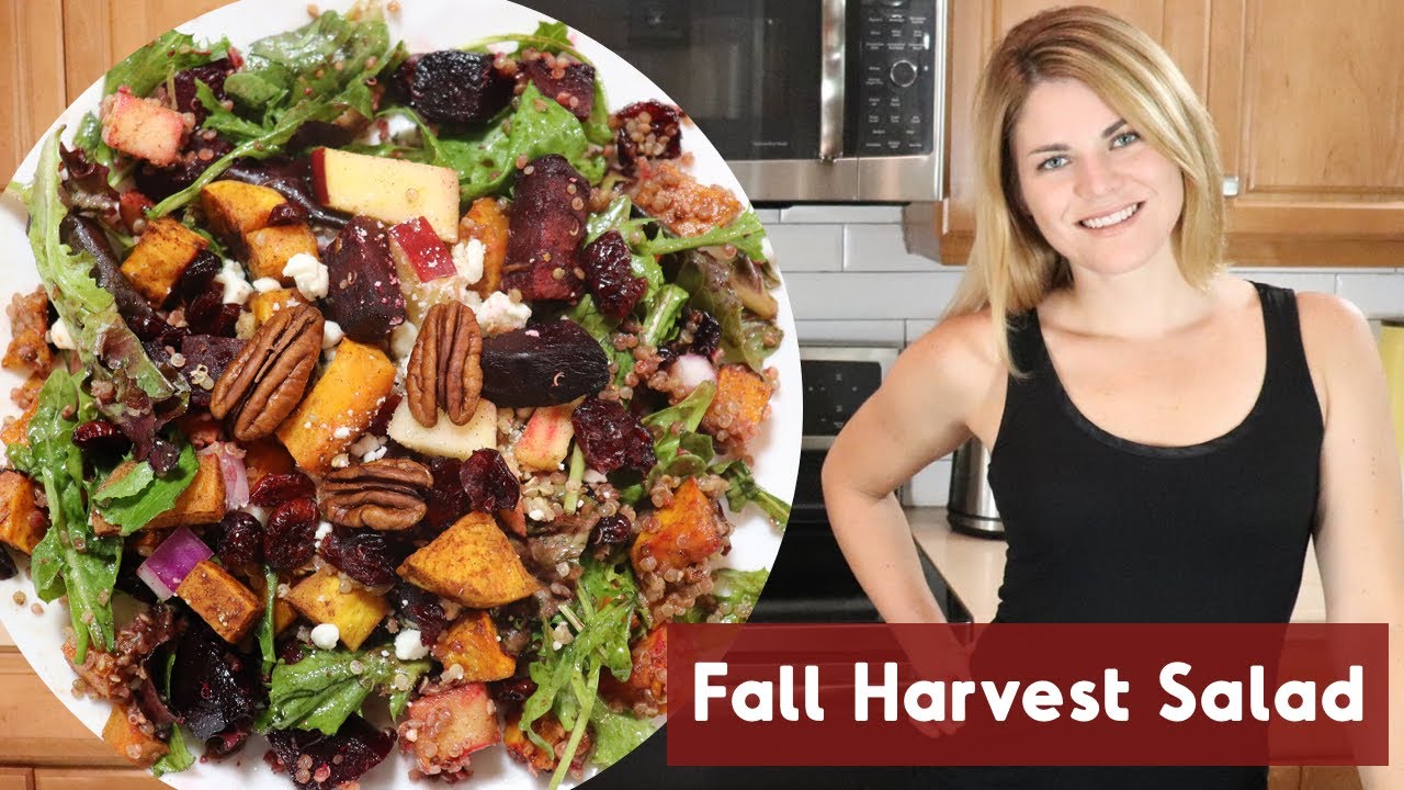This Fall Harvest Salad with Roasted Beet and Sweet Potato, Apple, Cranberry, and Quinoa is a healthy, light, whole food lunch, dinner, or side option packed full of nutrients from vegetables (perhaps locally and seasonally available) and good carbohydrates for power / recovery from your cardio endurance (running, cycling, swimming, etc) workouts! It is also a fantastic healthy, gluten-free, whole food with a vegan and dairy-free alternative option to complement your Thanksgiving / friendsgiving meal!