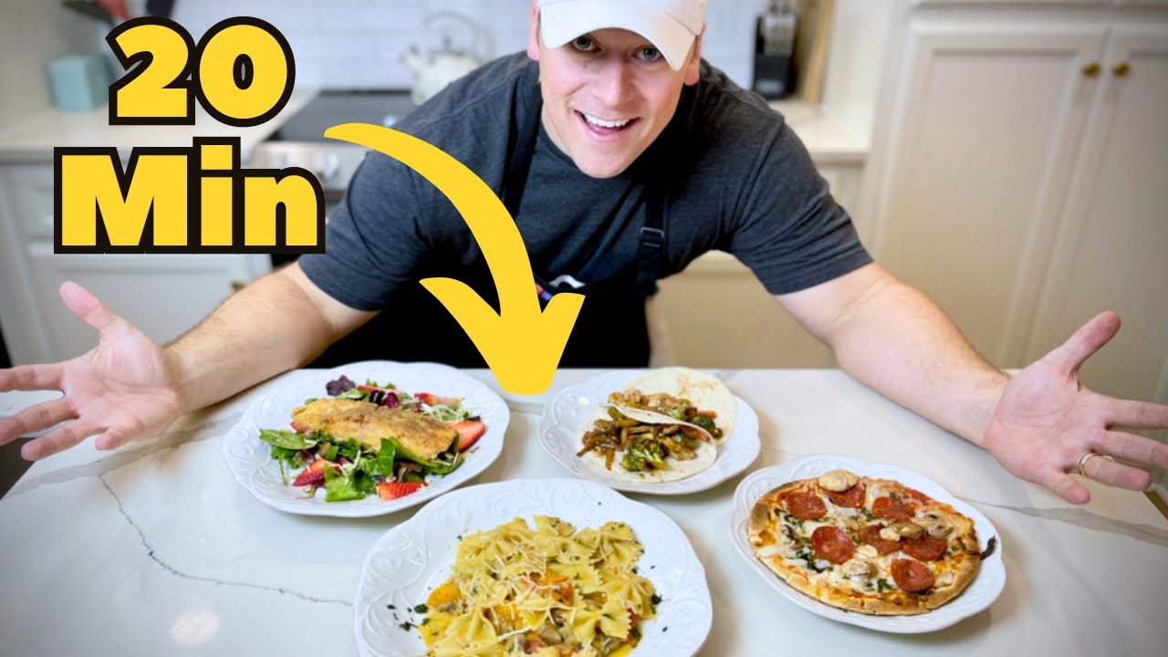 In this video I share 3 meals and one bonus meal you can make in less than 20 minutes plus a bonus meal idea you can make in 10 minutes or less. These meals are the cover a variety of basic cooking skills for home cooks and require no recipe. No recipe cooking is key to speeding up dinner time.