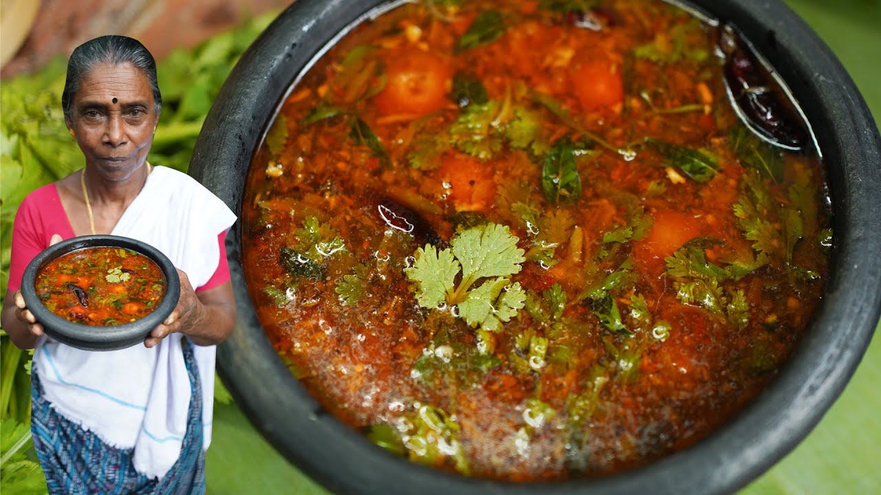 Saute them well for a few minutes. Again, add crushed powders like dry red chilli,coriander seed and cumin seed mix. Saute them well for a few minutes. Add chopped tomatoes and saute them well.Add asafoetida powder and fenugreek seed. Saute them well for a few minutes. Add squeezed tamarind water and salt. Stir them well for a few minutes. Add a sufficient amount of water and stir them well.add coriander leaves, stir, and boil them well. Remove from the fire and set aside.