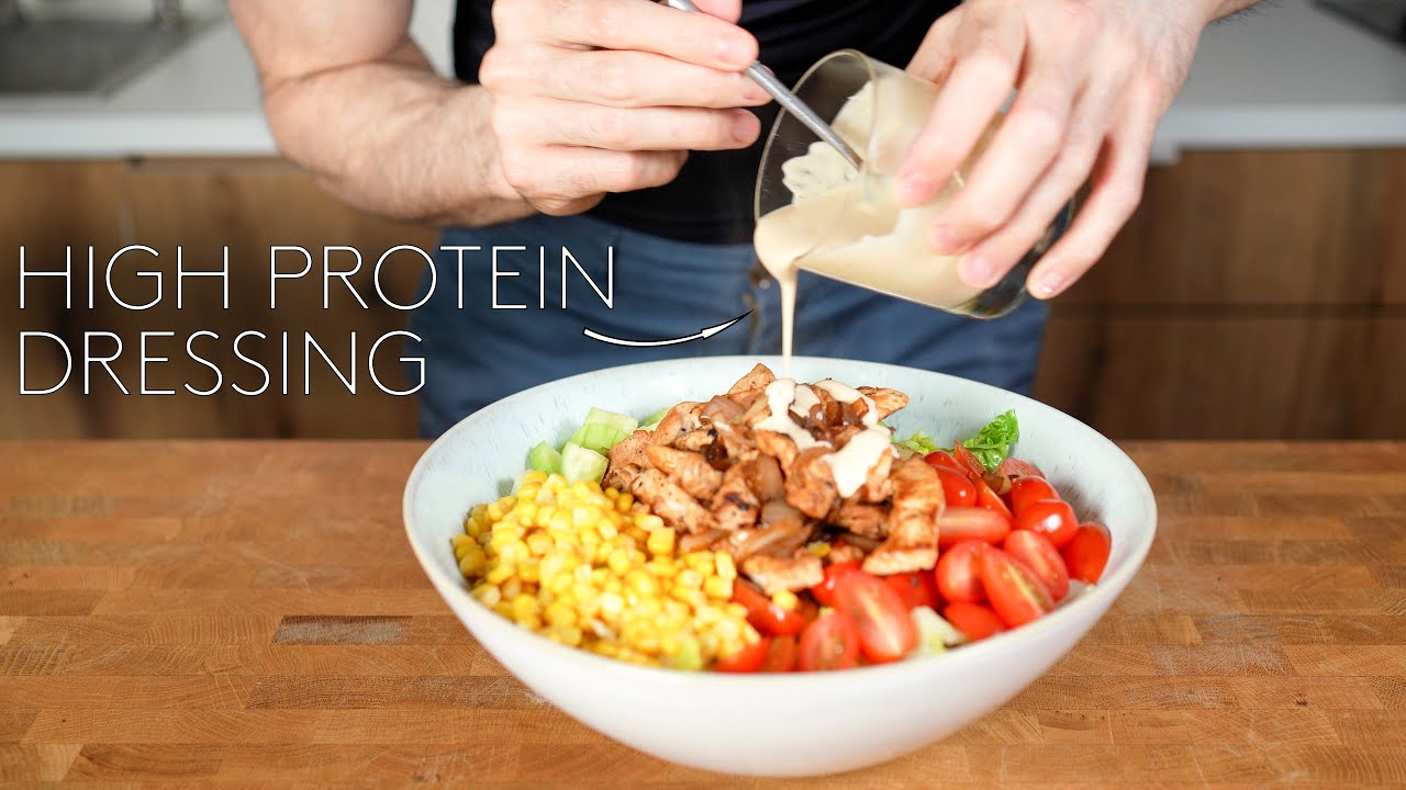 A grilled chicken salad with a dressing that has 9g of protein. I think that’s the perfect healthy meal for a weeknight. Enjoy 🙂 My cookbook is out now: