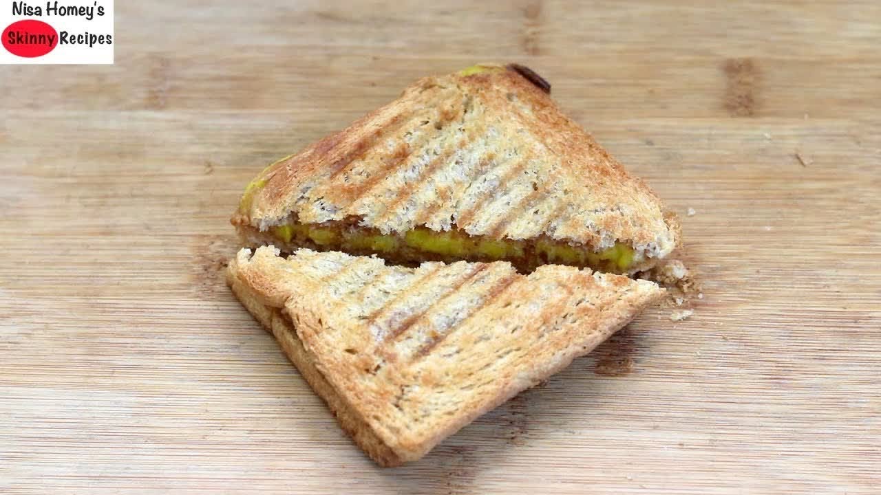 peanut butter banana sandwich is a quick and easy and healthy breakfast for hostel students and bachelors. Homemade peanut butter can be easily made in the mixie and no extra oil is needed to make this healthy filling, protein rich sandwichIngredients:2 brown bread
