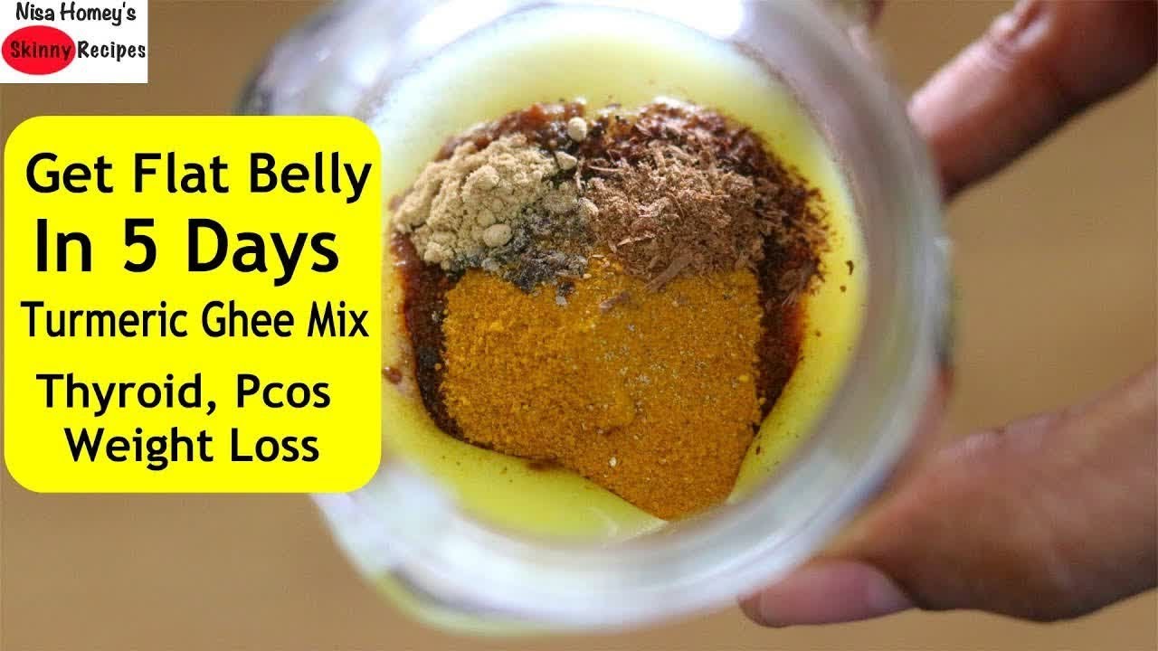 turmeric ghee, thyroid tea for weight loss, get flat belly in 5 days without diet or exercise with homemade turmeric ghee mix, remedy for stomach bloating (thyroid, pcos), quick weight loss with turmeric ghee for thyroid, pcos, hormonal issues. Turmeric tea for weight loss#fatfirst #turmericghee #turmericUPDATE: Have 1 tsp of this mix first thing in the morning, you can also have it with a glass of warm water or can have water after you have the mix. Those on thyroid meds to have their meds first and 30-40 mins later can have this.