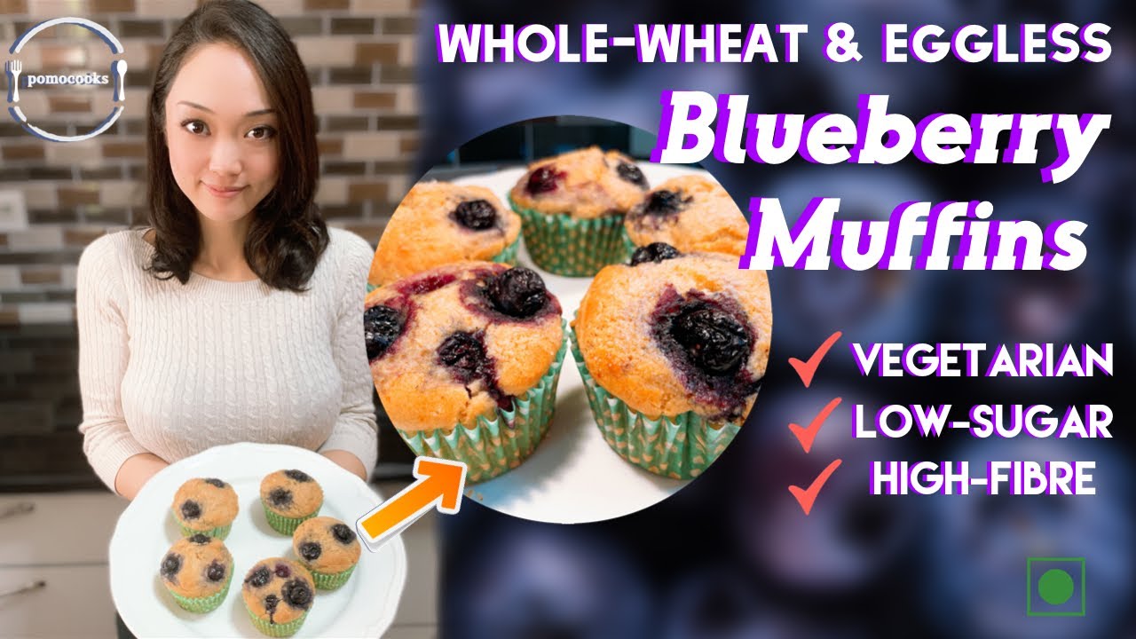 How to easily & quickly make moist & fluffy Blueberry Muffins that are very healthy? Made with wholewheat (atta) and without eggs, they are low in sugar and make a great vegetarian, high-fibre snack. The recipe is very simple.