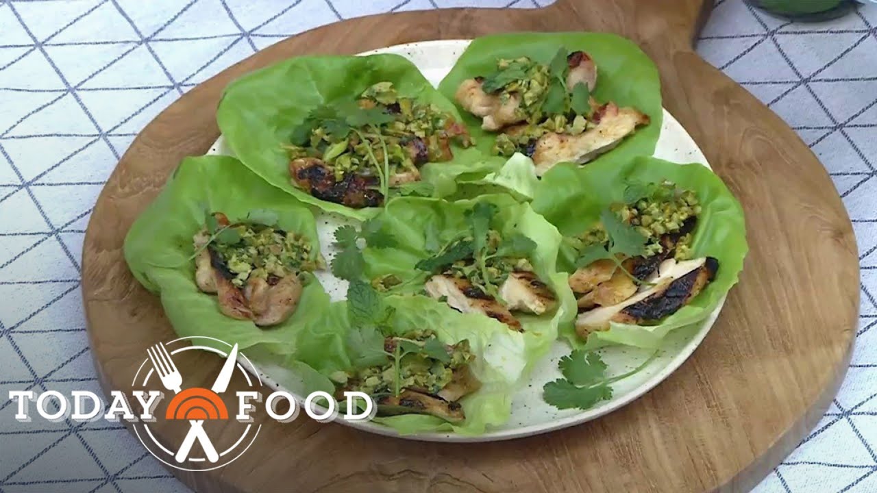 Culinary legend Bobby Flay stops by the TODAY plaza to share his recipe for grilled chicken thighs with a honey mustard glaze and crushed pistachios.