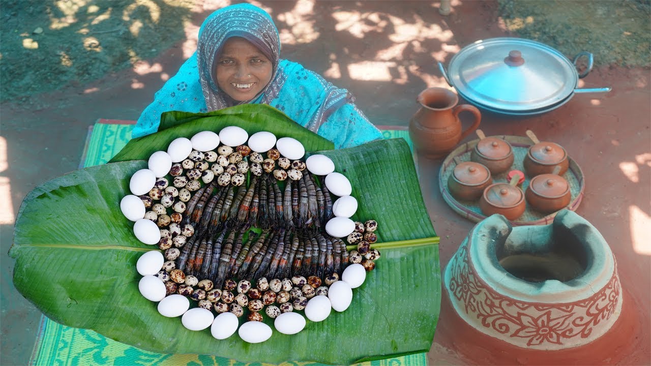 Village Food Quail Egg And Prawn Balls Recipe Unique Cooking Egg With Shrimp Balls Healthy Snacks by Deshi Food Channel.