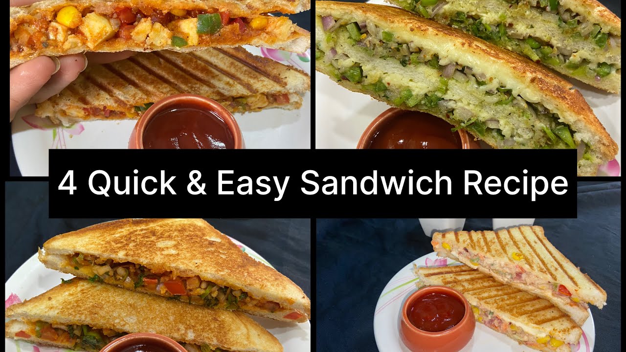 How to make sandwich , easy sandwich recipes, 4 best and delicious sandwich recipes by Aarti’s kitchen, healthy sandwich recipes , sandwich recipes for breakfast and dinner, gughra sandwich, schezwan paneer sandwich, spicy tomato onion sandwich, veg mayonnaise grill sandwich, street style sandwich recipes, tasty veg sandwich recipes.