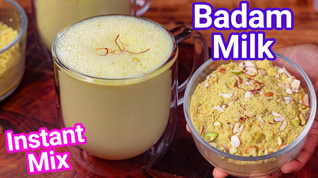 Badam Milk Recipe | Almond Milk Recipe | Badam Doodh Recipe with step-by-step photo and video recipe. The recipe for badam milk is extremely simple and it starts by soaking the almonds in warm water. It is later de-skinned and crushed / ground to a smooth paste and mixed with boiling milk. Cardamom and saffron are added for extra flavoring and are served warm or cold.