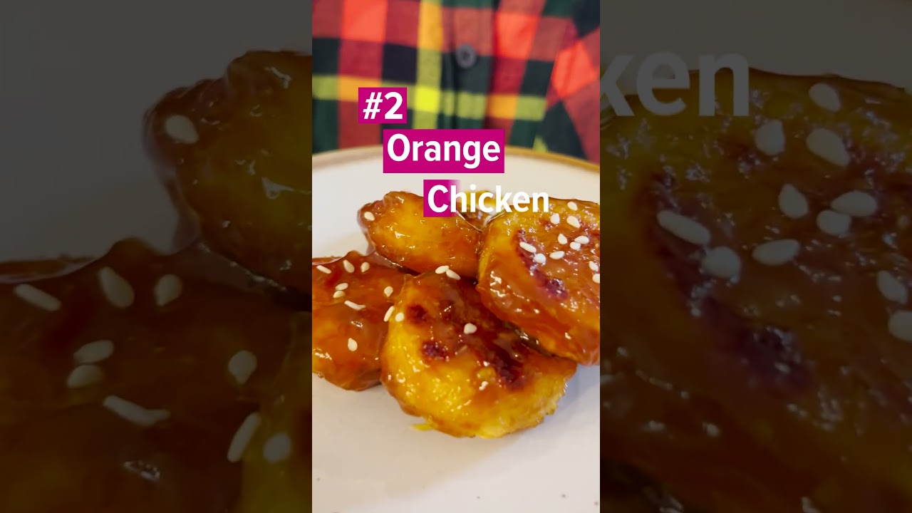2: Orange chicken with a sweet and sour sauce and sesame seeds