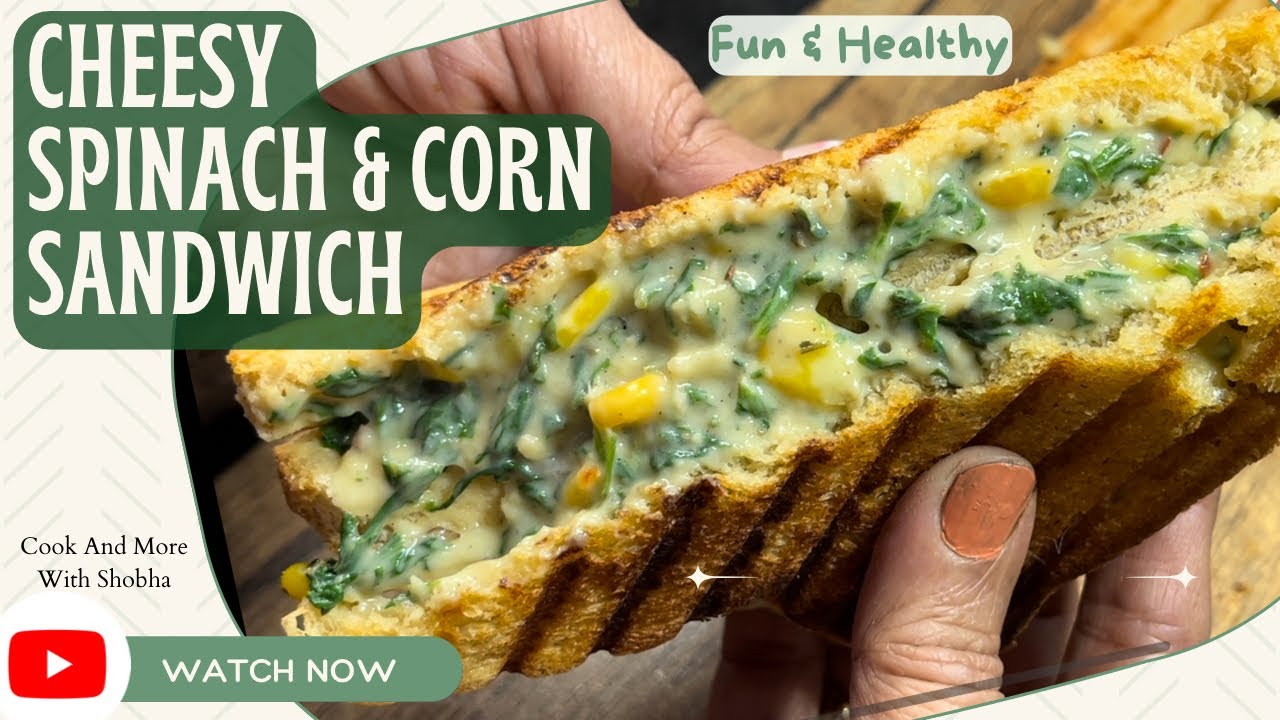 The Healthy Spinach Corn Sandwich is a tasty blend of sautéed spinach, boiled corn, and creamy white sauce sandwiched between grilled slices of bread.
