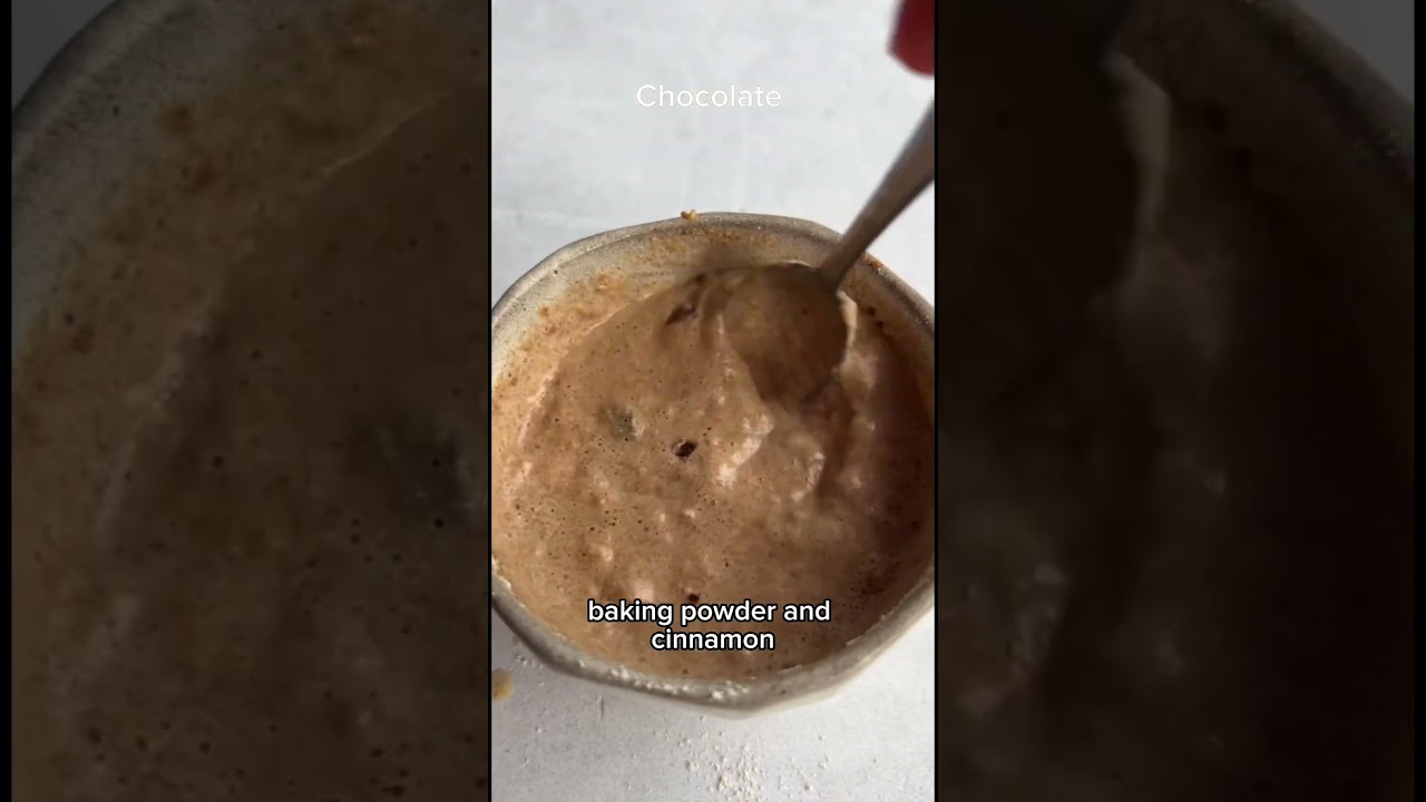 I just ate dinner and I’m craving something sweet so let’s make a two-minute mug cake this mug cake couldn’t be easier to make we start by adding our liquid ingredients to a greased mug and we mix in our dry ingredients like oat flour baking powder and cinnamon finish it off with some