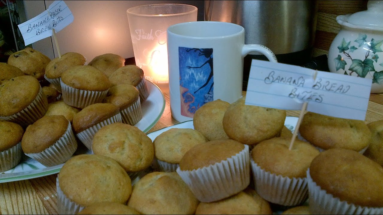 This easy banana bread recipe at home has been modified from baking just a loaf into tasty little banana bread bites! These work wonderfully in lunch boxes as well as for parties or at a buffet. This makes about 48 mini muffins (or one loaf… but where’s the fun in that?)
