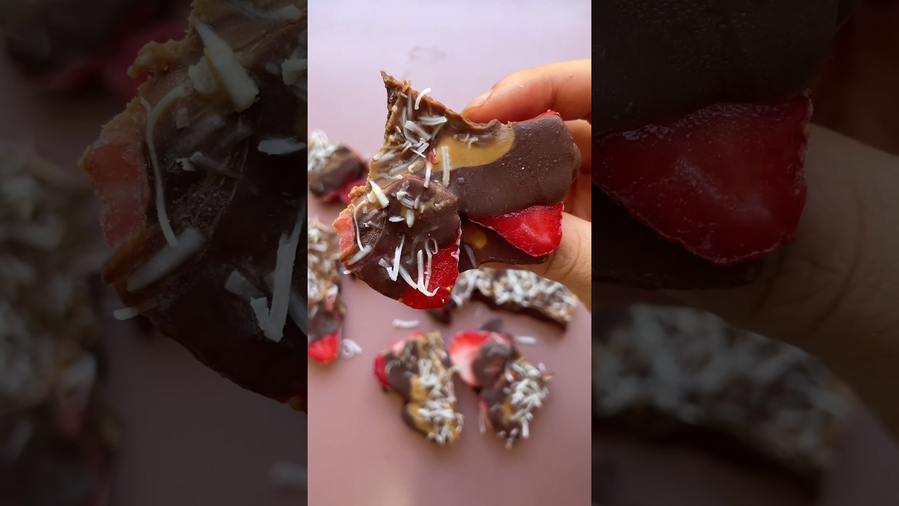 This viral chocolate strawberry bar is absolutely delicious I totally understand why it’s trending I’ll leave the recipe below you definitely need to give it a go