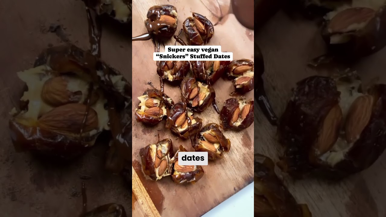 Sweet and once your chocolate has fully melted just drizzle all over your stuffed dates and you’ll have yourselft a very healthy snack so I advise to just make a whole bunch so if you’re craving for something sweet you have some healthy vegan Snickers stuff dates SK let’s see