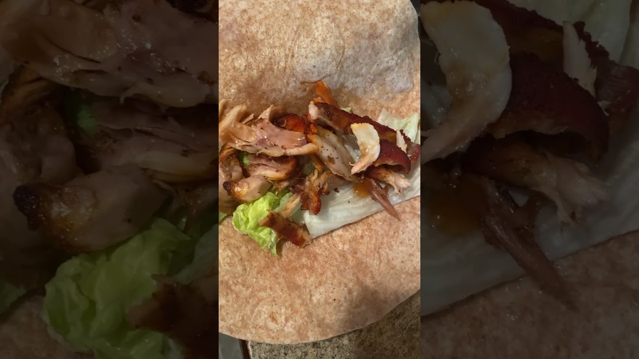 Dragon fruit with tortilla chicken and an apple