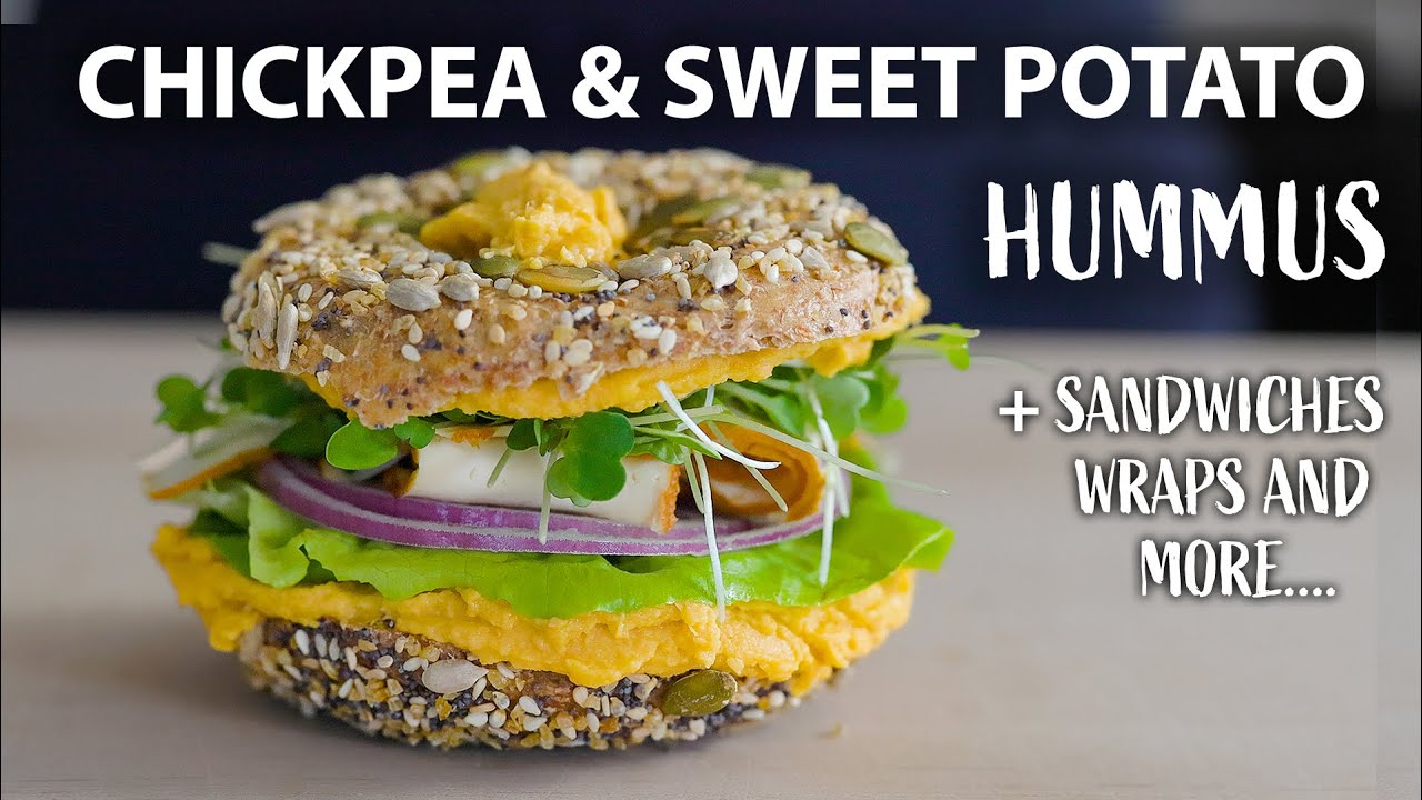 Chickpea Sweet Potato Hummus Recipe + Sandwich and Wraps | Easy vegetarian and Vegan Meals. This easy chickpea and sweet potato recipe is very versatile and is perfect for vegan and vegetarian meals and meal prep. This delicious hummus recipe made with sweet potato and chickpeas and toasted garlic is not only easy to make but is a great way to add vegetables to your diet. A high protein and nutrient rich chickpea recipe great for a healthy vegetarian meal. Add this high protein and healthy chickpeas recipe to your plant based lunch or dinner menu. A great way to add garbanzo beans and sweet potatoes to your meals. Check out my other vegetarian and vegan recipes!