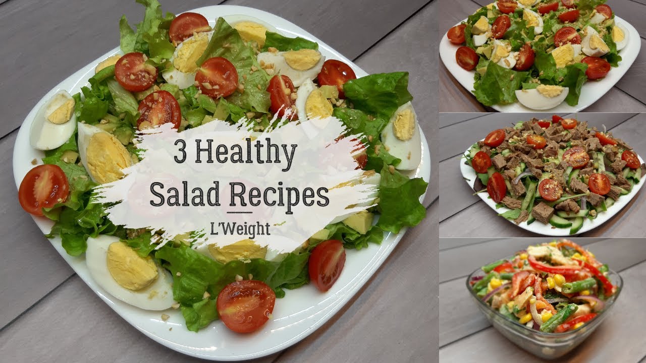 3 healthy and VERY Tasty salad recipes. All salad recipes are perfect for people who eat healthy food or want to weight loss. All salads are very quick and easy to cook. These are great recipes for dinner or lunch. The list of ingredients is below. Eat healthy salads and be healthy!