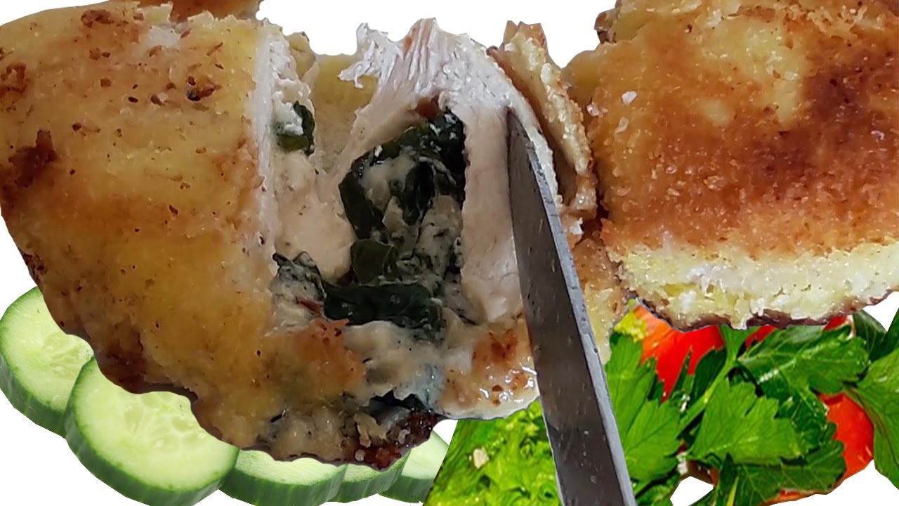 5. Cut the chicken fillet in half and then slit each half creating a pocket for the filling.
