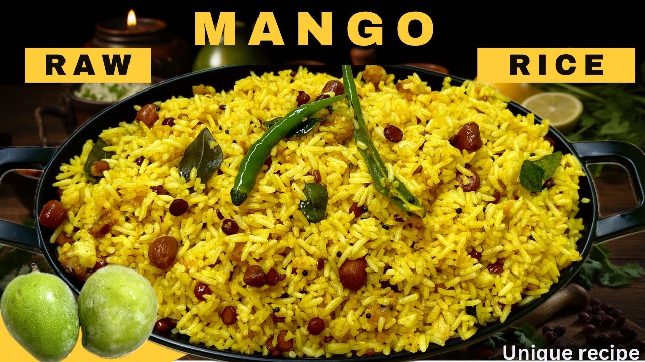 Hello friends, how are you all? In the mango season, we will make raw mango rice which is very healthy and tasty. It is necessary to make it in the mango season. If you have not made it then make South Indian flavored raw mango rice. Friends, this is very tasty. It happens that we will use very less spices in it, so let us start making this, so first we will take rice here, I have taken normal rice here, the same rice that Nana eats at home, there is no need to take any Basmati rice, see this. I have such small rice, first we will wash it, after washing we will put it in the cooker and here I have taken one cup of rice and two cups of water in it, I will add a little salt and a little lemon, it is important to add this friend because No, here the rice will be cooked completely and it is very tasty and it is also very good for digestion, so after switching it off, I will give two whistles in high flame, just see here our rice is ready. See how rich our rice is made here and it is also very tasty. Friend, see the rice is fully rich. At this stage, we will leave it in the cooker itself and in some other pot to cool down. There is no need to transfer, friends, this rice is so delicious, nothing is needed with it, you will eat one spoon of empty rice, so friends, it is so good for digestion, that is why it is always necessary to add lemon oil in it. Do not add oil at all, there is no need to make rice khila khila, so here I have taken a raw mango. First of all, we have taken out its peel properly. See here, we have grated the mango. After doing this, see that mine is almost grated. Similarly, we need mango. See this mango seed also. Well, ours has been cleaned and taken out. Then after this, we have our rice here, see how good it is here. It has cooled completely and the rice is being left here. The complete rice is ready here. Then here we will take the pan. We will put about a little amount of almonds in the pan. We will fry these almonds here and take them out. If you give then look, here we are almost done frying, I will transfer it to another pot, after this I have added about a teaspoon of asafoetida. Adding asafoetida gives a very nice aroma, so let’s pluck two curry leaves from my garden. So see here, I will pluck fresh curry leaves and use them here, so I have taken one and we will go with one, then here I have also taken another one. After taking this, I have put some urad dal in the pot. It is the one which we use in Dosa. Here we will add about one teaspoon of urad dal. After this, we will add a little bit of gram dal. Both of these look very tasty. There is a crunchy flavor in the mouth. Friend, do add a little bit of this here. We will fry it, after this it is almost done, I will add one teaspoon of mustard in it, we will let it crackle a little, after this it is done, we will add in it the grated raw mango, we will add it at the same time and here We will mix it well here and it will be almost cooked a little, its flavor will start releasing here, just in this stage, we will take some salt and turmeric, after adding this, we will mix it well here, so see friends. This is looking so beautiful, right now, we will add green chilli here. Friends, you can add green chilli or red chilli as per your liking for spicy food. We eat very little spicy food, hence three. Green chillies have been added here. We will break the curry leaves that we had brought and add them at this time. Just mix everything well here. Now here we will add a little red chilli powder and add it here and mix it well. We will mix it a little. At this stage, we will add the rice that was kept in it. After adding it, we will mix it all well. See friends, slowly its color has also started changing and it is looking very tasty. It looks wonderful, after putting it here, we will mix it well. After this, see how full the rice is. No one will say that we made this rice in the cooker and added lemon to it, so see the complete rice. Here it is getting bright, so see friends, it is almost done here, at this stage, we will add a little salt here, friends, here you can add salt as per your choice, after that I will add one teaspoon of coriander powder, after this here. I will add one teaspoon sugar friend, I forgot to shoot and half teaspoon chilli. After adding this powder, we will mix it well here, so that the sugar present in it gets mixed well all around, its taste gets enhanced completely, it gives a spicy taste, friend, so I added a little sugar after this. We will put the same almonds that we had kept here, after adding them, we will mix it all well, then see friends, how beautiful it is looking, it is also looking amazing, this mango rice of ours is done here at this stage. Now turn off the flame, then see friends, it is almost done here, we will turn off the flame and leave it to cool down, after that we will do the plating. Friends, this is done, no one will say that we should make this delicious rice in the cooker. Friends, you can give this in children’s tiffin, you can also take it to office, it is very tasty and healthy. Friends, if you like it then please like, subscribe and comment. Your support is very important to me. Friends, this is very important. It is an easy recipe and gets ready immediately. Do try it once. Raw Mango Rice is very tasty. Friends, see you in the next video.