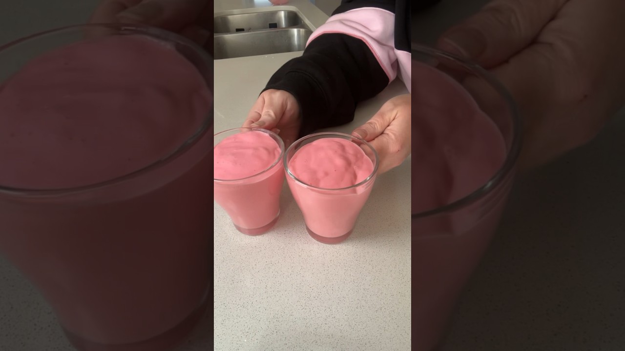 this is how to make a flamy which is a high protein low calorie dessert it’s typically made with evaporated milk and jelly but I am using jelly crystals and some chabani yogurt just to make it a little bit healthier and add a bit more protein into it so all you have to do is melt your jelly crystals with some boiling water and you have to give it a really good mix and then you need to add some cool water and again give it a good mix then then you want to pop it into your fridge for about half an hour and then after half an hour you add the Greek yogurt and then just give it a really good whisk until it’s light and fluffy then once it’s light and fluffy you can add it into a bowl or into some little cups like I did and then you just want to pop it into the fridge for a minimum of 2 hours and then you have a little healthy high protein dessert