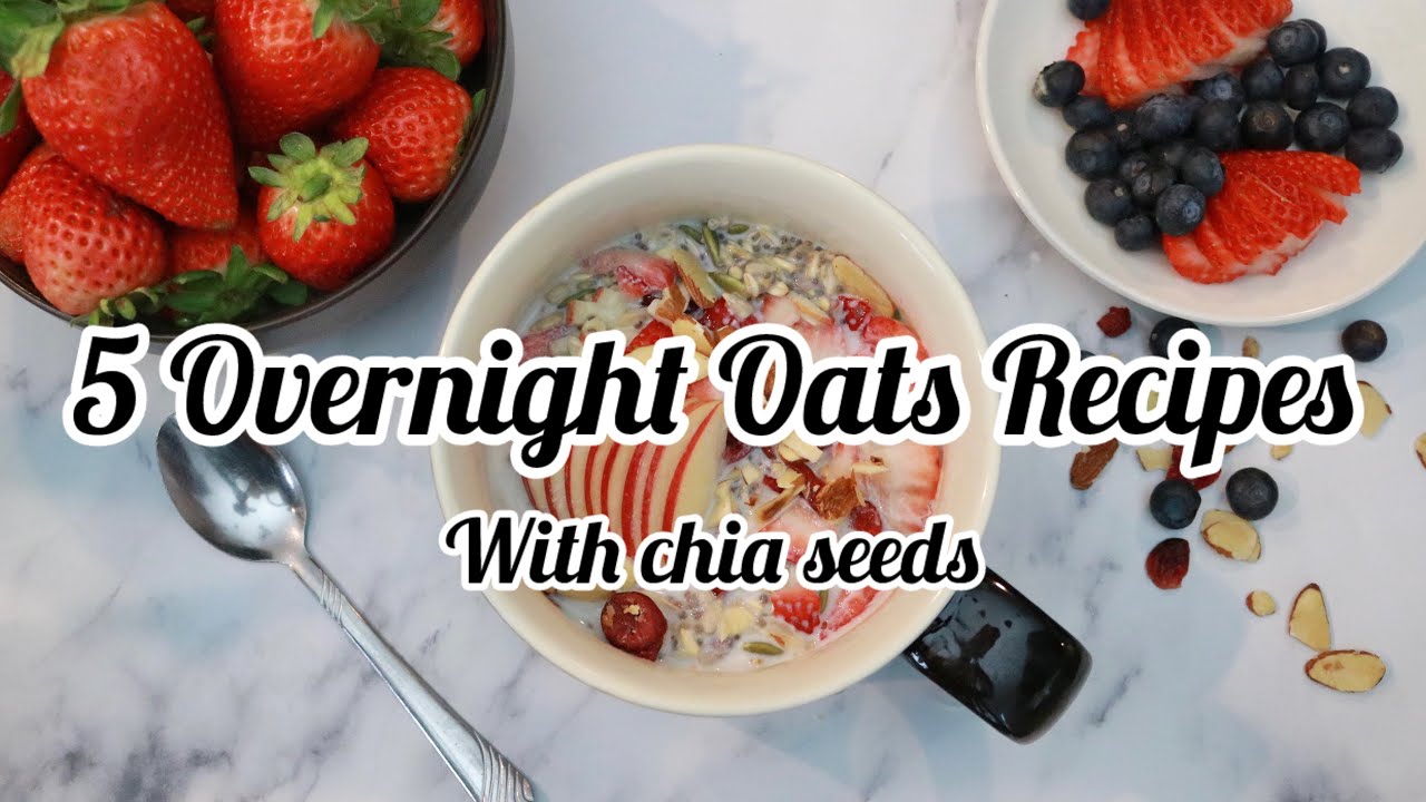 About this video : In this video I am going to show you how to make 5 different styles of overnight Oats with different styles.About this video : In this Video I am going to show how to make quick and easy breakfast Overnight soaked Oats .Perfect breakfast for weight loss and makes your skin Glow naturally .Easy Glowing Skin recipe …no need to cook . just soak them overnight snd ready to eat next morning.Perfect breakfast when you don’t have time time cook .prepare ahead and work like a instant breakfast which is healthy too.Add fresh fruit for make it more healthy.seeds here we are using soaked ones which helps to break phytates and helps to absorb nutrients by our body .Soaking seeds is very important.