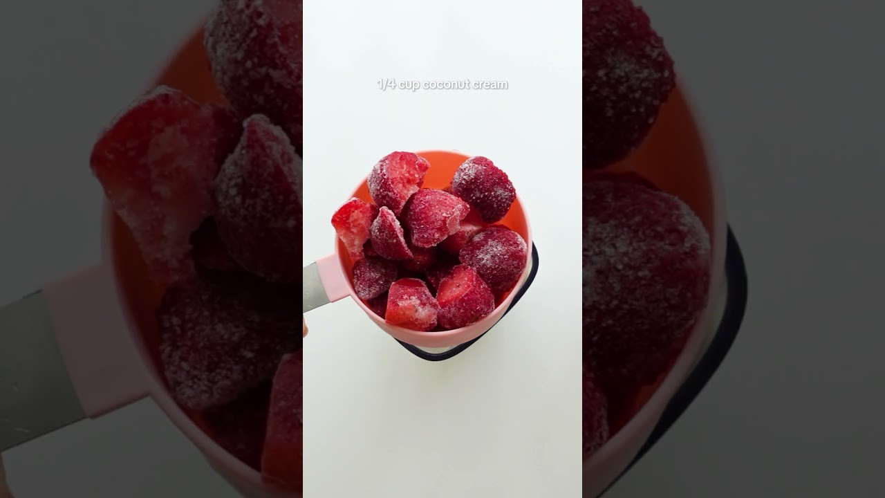 1 cup (130g) frozen strawberries 1 cup (140g) frozen banana 1/4 cup (50g) coconut cream1. Put all the ingredients into a blender and mix until smooth. 2. Eat immediately or freeze for 30-60 minutes before serving.हे [संगीत] 3IngredientCreamyCuisineeasy ice cream recipehealthyHealthy Cuisinehealthy desserthealthy ice creamhealthy recipesice creamice cream recipeIcecreamquickrecipesummer foodVideoVlogYouTube
