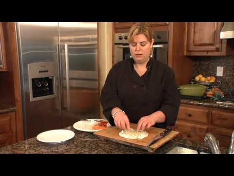A great, healthy snack recipe is to spread Neufchatel cheese on a whole wheat tortilla, add sprouts, carrots and bell peppers, and roll up the tortilla with the vegetables inside. Cut the rolled tortilla into pieces for a more appealing presentation with advice from a private chef and caterer in this free video cooking lesson.