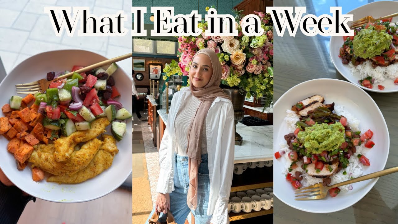 hello you guys welcome back to my channel I hope you are having a wonderful day today this week’s video video I’m going to be sharing a lot of like what I’m eating I’m going to share with you guys some healthy dinner ideas that I’m doing lunch just whenever I’m eating something healthy I’m basically going to share it with you guys and it’s also going to be a way for me to stay on track like holding me accountable because I told you guys in my last video that I’ve been falling off and we need to get back on track so today I’m actually cooking for my family like my mom and Dad are coming Naim Lauren’s coming and we are going to be making salmon I realized I haven’t eaten fish in like a long time and I used used to eat it weekly and it’s so good for you with all the healthy fats so we’re going to do salmon red potatoes and I’m also going to make the peach and arugula salad that I made a couple weeks ago I’ve been dreaming about it ever since Omar actually ran to the grocery store for me because we needed the salmon and potatoes so he went to go get that he’ll be home soon I am just going to chat with you guys a little bit while I prep this salad cuz that’s the only ingredients that I have right now to get started the heat has arrived in Texas you guys it feels like it’s over 100° I don’t know if it is but goodness it is so blistering hot outside something light like salad and salmon is just that’s what sounds good today so today’s Monday so we just had a really lovely weekend with the family we had Omar’s family over last night to swim and it just makes me so happy like seeing everyone enjoying our pool and like having fun and the kids running around it just makes me literally so happy this is very random but this cucumber smells like the Homegrown cucumbers that I used to smell at my great grandmother’s house they used to grow cucumbers and peppers and all kinds of stuff in their Garden especially cucumbers I remember and this just literally smells like it is that weird maybe it is it’s crazy how scense can like bring you back to certain memories masallah my great grandparents both of them live to be well my great grandma lived to be 99 and then I believe my great-grandfather also lived to be 100 or maybe almost 100 so Masala and these are on my mom’s side of the family and I always wonder did they live to be that long because they grew a lot of the food that they made they had a garden and they ate a lot of homegrown vegetables and things like that so I always wonder like is that the secret to how they lived so long masallah my peaches are not very ripe sadly but I think it’ll still be okay all right we’ve got a arugula cucumber diced feta thinly sliced Peach you have to do the Red Onion with this it is a non-negotiable I like to thinly slice that as well hello oh that’s so sweet thank you Bab why why do I deserve these because I love so sweet I had the best husband that onion was kind of small so I’m going to do a little bit more we’re going to do some chopped come on bab okay how beautiful does that look I’m going to wait to mix this and add the dressing just because we have like maybe a couple hours before we eat and I don’t want to be soggy but I’m going to add olive oil lemon and some pomegranate molasses and salt and mix this together and it’s so good now we are going to put the salon on the tray so self-explanatory for potatoes we’re going to do garlic salt black pepper and rosemary give that a good coat okay those are ready for the oven for the salmon I’m just going to do olive oil and then the garlic salt and pepper on top very generous with the garlic salts okay that’s ready for the oven as well okay everybody’s here I just added olive oil pomegranate masses lemon and salt dinner is ready I’m in Dallas with Lauren today we had a little content day and we got some pictures and videos successful yes now we got lunch and we’re going to head back and see my babies I thought I show you guys what we’re eating because this is a what I eat video this is probably not the healthiest thing I could have gotten to be honest you guys and I so we were sweating yes we burned so many calories we were walking Lena was walking in heels in 100° we deserve it workout okay it’s kind of basic but also it’s so comforting it’s chicken grilled chicken glutenfree mac and cheese and then roasted broccoli so yummy we literally got the exact I know literally the exact same oh and healthy you have to their freaking gluten-free chocolate chip cookies are so good it’s insane I know oh and we got lemonade so this is a little bit of an enjoying meal treat it’s the treats we’re sing I know it’s so freaking good especially cuz we haven’t eaten today literally all I ate this morning was a banana it’s kind of giving like air W never been to airb well I haven’t either but people go and get their plates they get like mac and cheese broccoli really this is what they get protein but I’ve heard people say it’s actually not as good I love watching ear one I’m like I’ve never been there and probably never will but looks it looks so good the buffalo cauliflower M looks delicious I think they have a mac and cheese I really want to try the haly Bieber smoothie that looks so good literally $20 that’s ridiculous my girlfriend that’s why I don’t think I’ll ever purchase it that’s ridiculous I think we can make that at home oh we should try mhm the coconut cream that would be a good thing to try mhm mhm wearing green today I always get told that I’m never wearing any color I hope you guys are happy now that doesn’t count it doesn’t count anytime I wear color nobody appreciates it so it’s a nude green you’re one of my haters my biggest haters I’m I’m in your comments okay today I’m going to be making chicken fajitas Omar’s going to grill them and I’m also going to do cheese tast illas just 