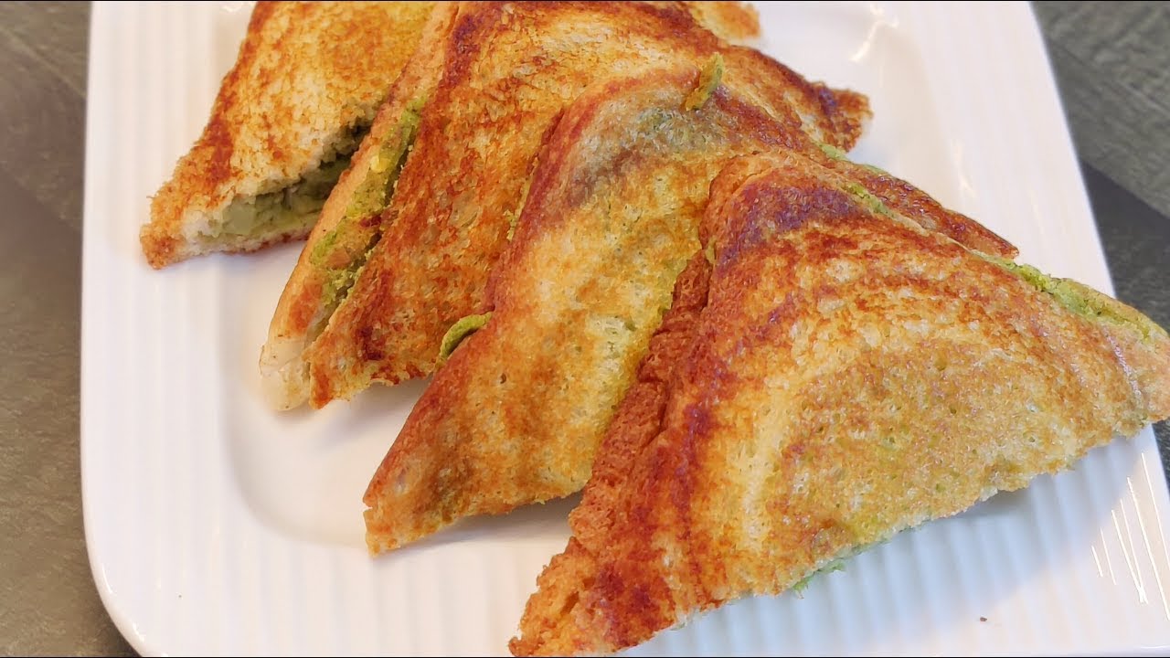 [संगीत] आज की वीडियो में एक बहुत ही हेल्दी और टेस्टी सैंडविच की रेसिपी देखेंगे इसे मैं बिना दही और बिना मेयो के बनाऊंगी और इसमें मैं कोई भी सॉस ऐड नहीं करूंगी फिर भी यह बहुत ही क्रीमी और टेस्टी बनकर तैयार होता है आई होप आपको यह रेसिपी पसंद आएगी तो वीडियो को एंड तक जरूर देखिएगा चलिए इसे बनाना शुरू करते हैं तो सब सबसे पहले हमें चाहिए बॉईल किए हुए छोले तो मेरे पास में यहां पर आधा कप छोले हैं तो छोले कैसे बॉईल करते हैं यह तो हम सभी को पता है बट फिर भी मैं आपको एक बार बता देती हूं इसे अच्छे से धोकर आपको ओवरनाइट या फिर मिनिमम 6 घंटे के लिए सोक कर देना है और फिर इसे प्रेशर कुकर में दो सीटी हाई हीट पर और तीन से चार सीटी आपको लो टू मीडियम हीट पर लेना है या फिर आप इसे तब तक बॉईल कर लें जब तक ये अच्छे से सॉफ्ट नहीं हो जाते हैं तो ये बॉईल किए हुए छोले मैं एक मिक्सी के जार में ऐड करूंगी उसी के साथ में मैं इसमें मिलाऊंगी हरी मिर्चें मैंने यहां पर तीन से चार हरी मिर्च डाली है लेकिन आपको जितना तीखा पसंद है आप उसके हिसाब से कम या ज्यादा भी कर सकते हैं और काली मिर्च का पाउडर एक चम्मच और थोड़ा सा नमक नेक्स्ट इसमें मैं ऐड करूंगी आधा कप हरा धनिया और 1/4 कप पुदीना के फ्रेश पत्ते उसी के साथ में आधा नींबू का रस और थोड़ा सा पानी डाल के इसका एक स्मूथ सा पेस्ट बनाकर हम तैयार करेंगे आपको जितना जरूरत लगे उसके हिसाब से थोड़ा ही पानी मिलाएं ज्यादा पानी ना मिलाएं नहीं तो जो ये स्टफिंग हमने बनाई है ये बहुत ही गीली हो जाएगी और ये स्टफ करते टाइम पे थोड़ी सी प्रॉब्लम होगी फिर आपको तो ये बहुत ही स्मूथ और क्रीमी पेस्ट हमारी रेडी हो गई है अब हम इसमें कुछ सब्जियां मिलाएंगे तो मैं इसमें ऐड करूंगी आधा कप बारीक कटा हुआ खीरा और 1/4 कप बारीक कटी हुई शिमला मिर्च एक टीस्पून रेड चिल्ली फ्लेक्स और थोड़ा सा ब्लैक सॉल्ट अब इन सभी चीजों को हम अच्छे से मिक्स कर लेंगे अच्छा मैंने इसमें सिर्फ खीरा और शिमला मिर्च मिलाई है लेकिन आप इसमें अपनी पसंद की कोई भी सब्जी मिला सकते हैं तो अब ये स्टफिंग बिल्कुल रेडी है हम इसका सैंडविच बनाना शुरू करेंगे यह स्टफिंग को एक बार चख लें अगर कुछ कम लगता है तो आप उसे एडजस्ट कर सकते हैं मैं आज ये सैंडविच वाइट ब्रेड से बना रही हूं लेकिन आप ये सैंडविच अपनी पसंद के किसी भी ब्रेड से बनाकर तैयार कर सकते हैं तो एक ब्रेड का स्लाइस लिया है उसके ऊपर जो हमने स्टफिंग बनाई है वो अच्छे से स्प्रेड कर देंगे मैं आज ये सैंडविच को टोस्ट करने वाली हूं लेकिन यह सैंडविच को आप बिना टोस्ट किए हुए एज अ कोल्ड सैंडविच भी आप इसे खा सकते हैं और एक और चीज का ध्यान देना है जैसे-जैसे आप इन सैंडविच को टोस्ट करेंगे उसी टाइम आपको ये स्टफिंग लगानी है मतलब पहले से सारे सैंड