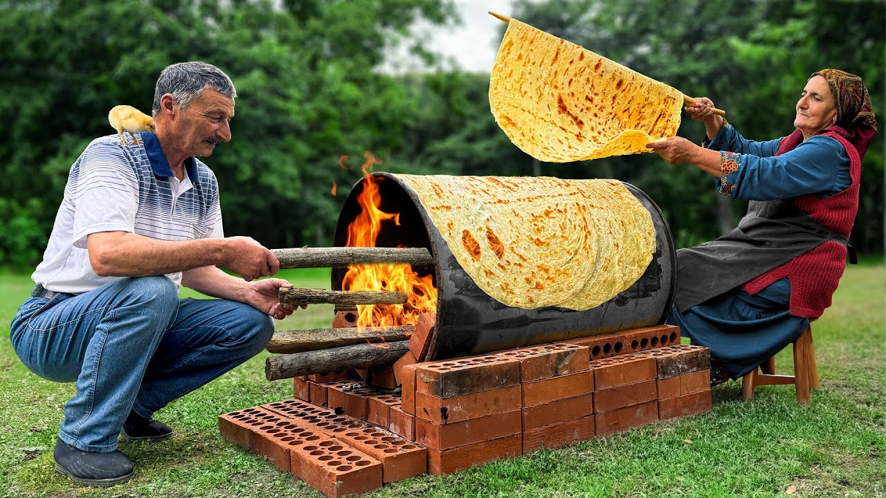 Wild onions and fresh kebabs make the best flatbreads! These flatbreads are healthy and taste very good. We cook them in my village in Azerbaijan. They are perfect for any meal and easy to make. Enjoy cooking this delicious recipe with me!
