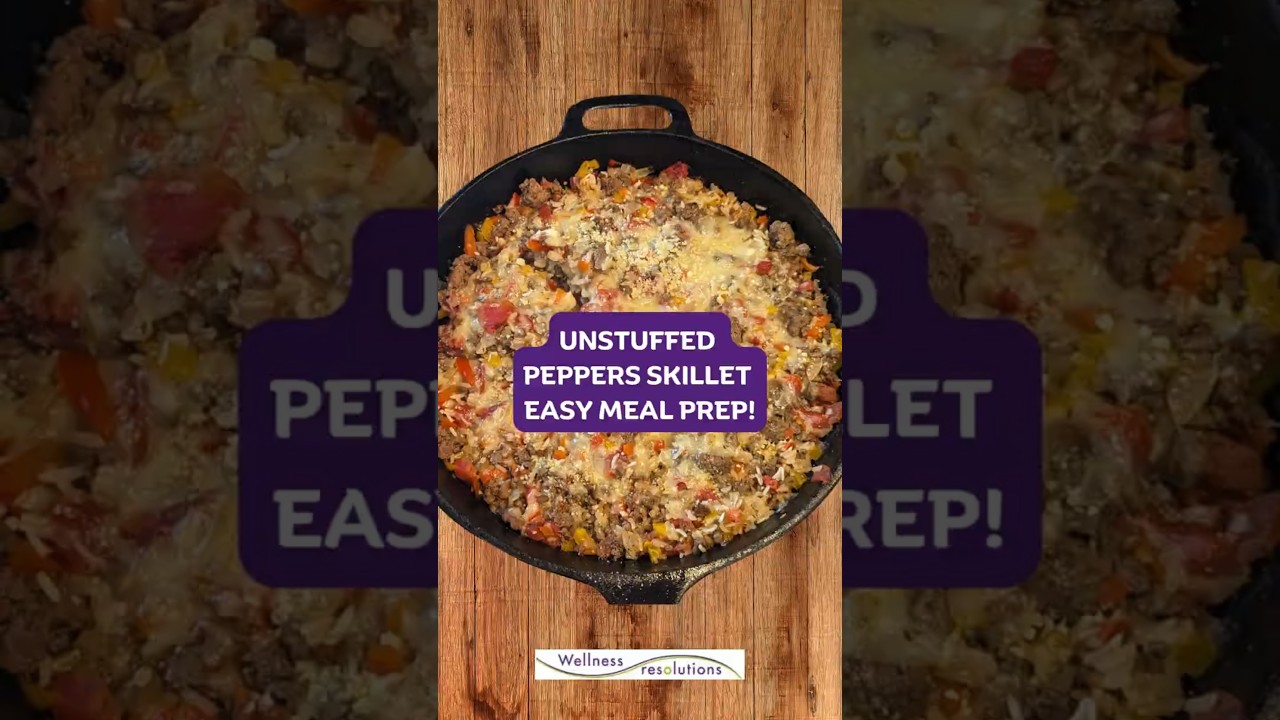 Healthy dinner ideas should always be easy dinner recipes. This unstuffed peppers skillet meal prep keeps it simple! 15 minute prep, 20 minute bake and naturally gluten free. This will be a new go to family favorite!