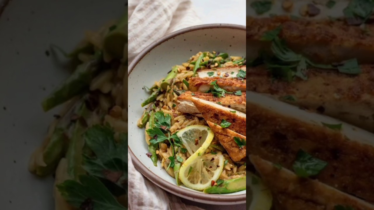 🍋 **Zesty Lemon Orzo and Pan-Seared Tofu** 🌱