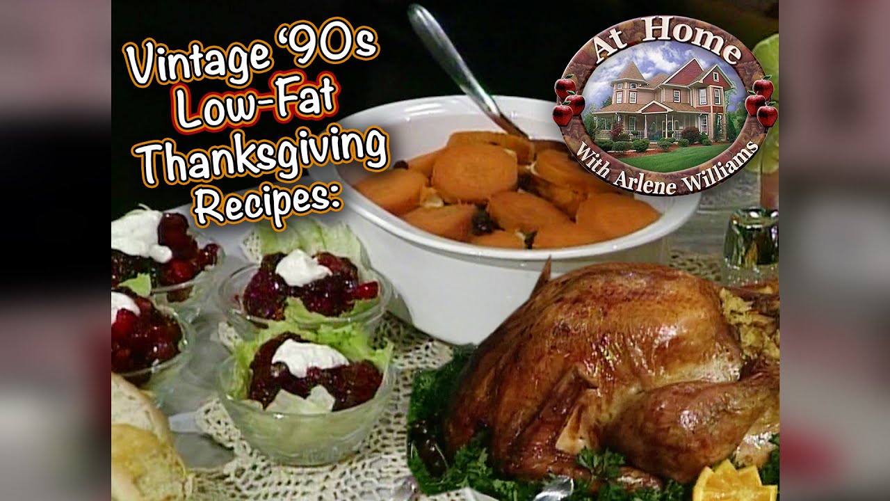 In this 1994 episode of At Home, Arlene shows off some lighter alternatives to the traditional Thanksgiving fare, including baked sweet potatoes with apples and raisins, almost no fat pumpkin pie, low fat white bread stuffing, and a jello cranberry sauce. Enjoy!