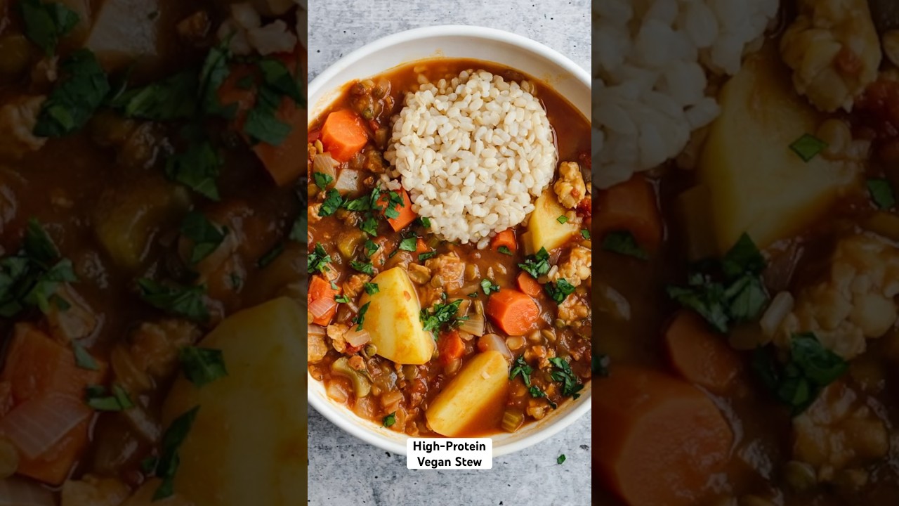 This Ultimate Tempeh Stew recipe has over 28 grams of protein per serving. It uses my foolproof method for making tempeh actually taste good. It’s vegan, rich in iron, and can be made oil-free. Serve over brown rice or farro for even more plant-based protein.