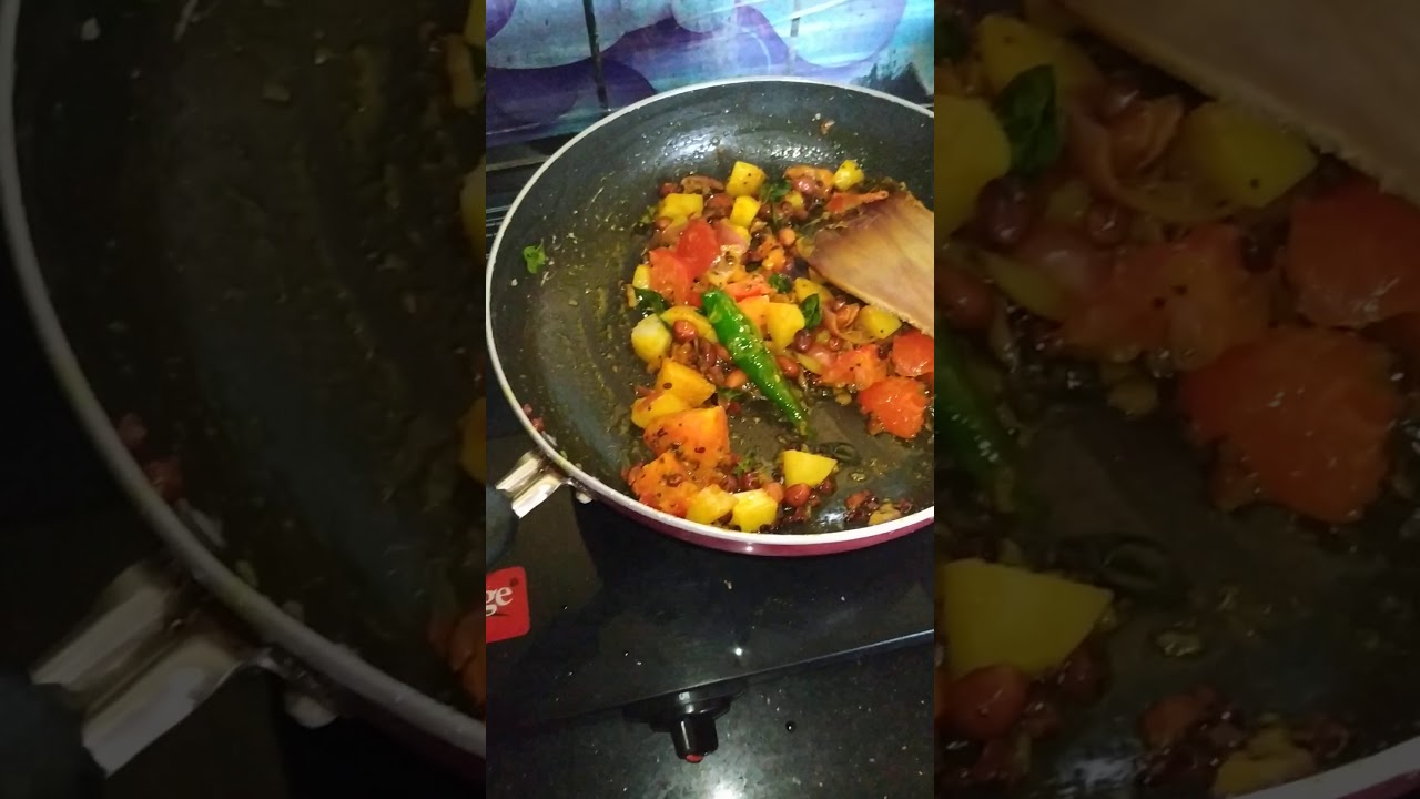 3. Add onion, potato, tomato and saute add salt and turmeric powder.
