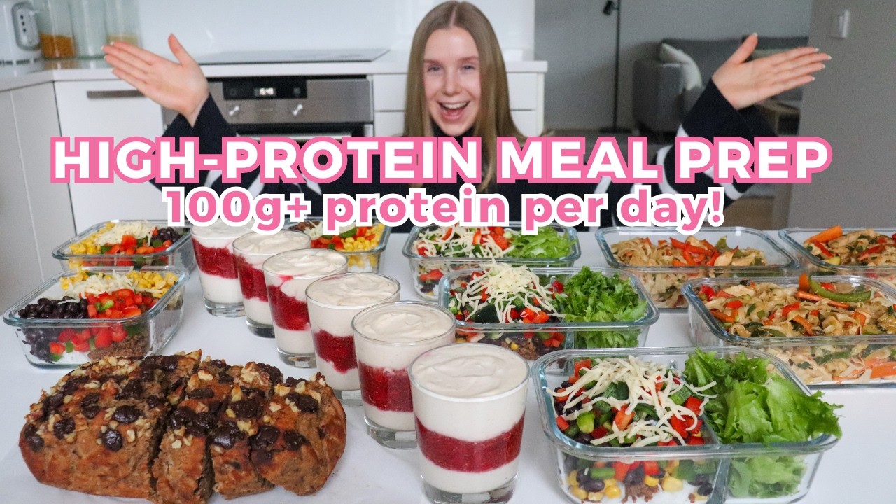 Healthy & High-protein Meal Prep with Easy Recipes😍 In this video we are going to prep healthy breakfast, lunch, snack and dinner that will get you 100G+ protein per day! We are making breakfast parfaits, noodles, healthy banana bread and burrito bowls!