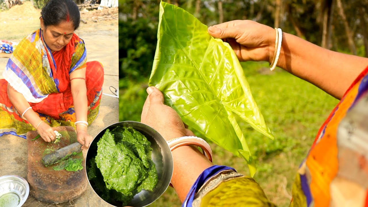 MaanKachu Pata Bata Recipe | Taro Leaves Paste Recipe